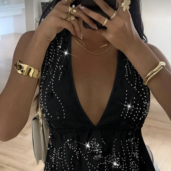 Top halter negro con bordados de lentejuelas